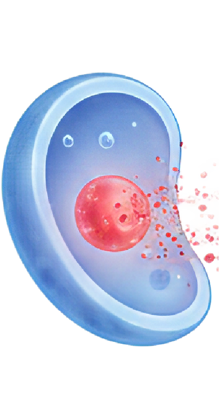 Beim Kontakt des befeuchteten Luftstroms mit den Schleimhäuten von Nase und Mund werden die kohä-renten Domänen in das körpereigene Wasser-netzwerk übertragen und verteilen sich weiter bis in die Zellen. Dieser Transfer erhöht die Ordnung der Wassermoleküle auf den Zelloberflächen und unterstützt so die Protein-faltung, um lebenswichtige Proteinstrukturen und -funktionen aufrechtzuerhalten.